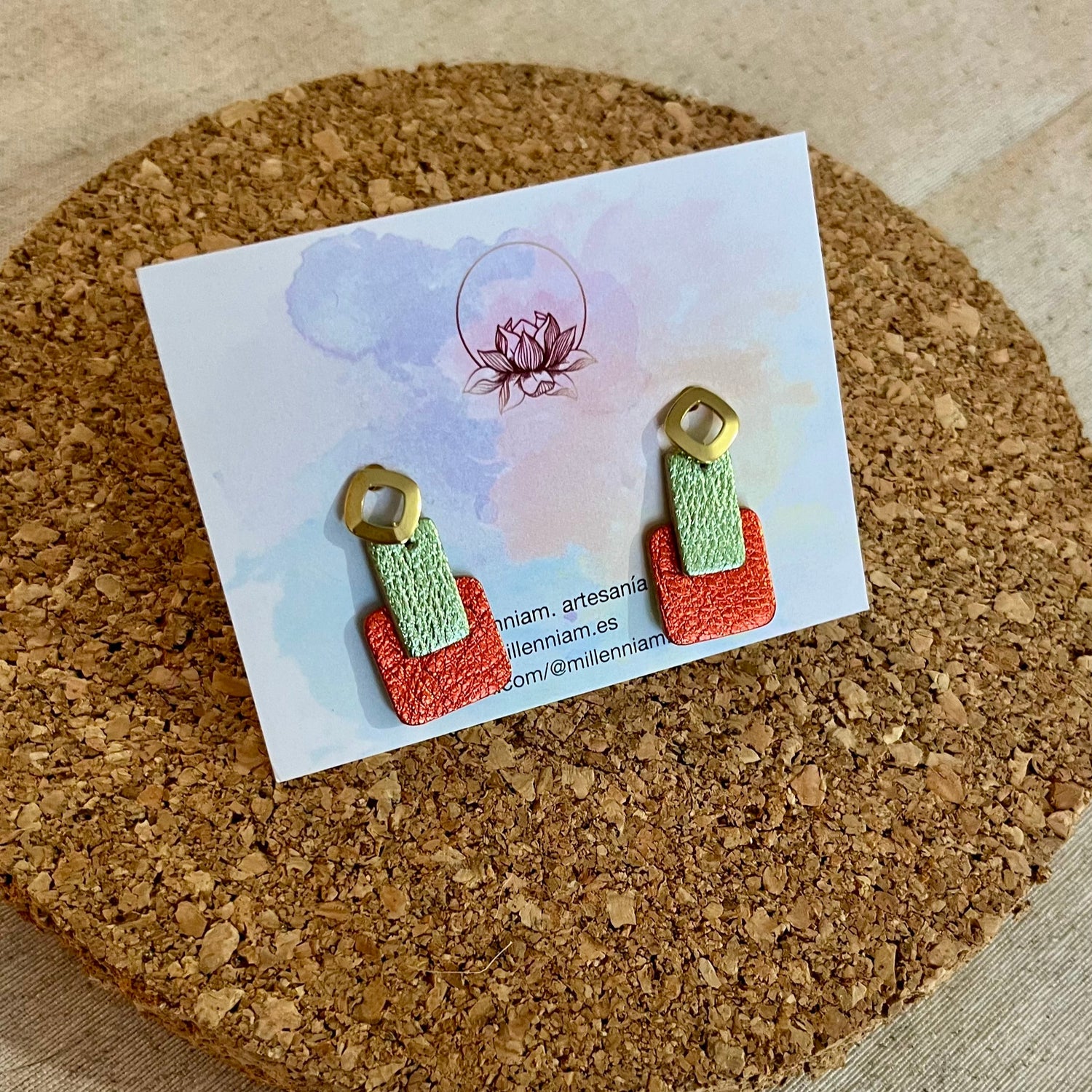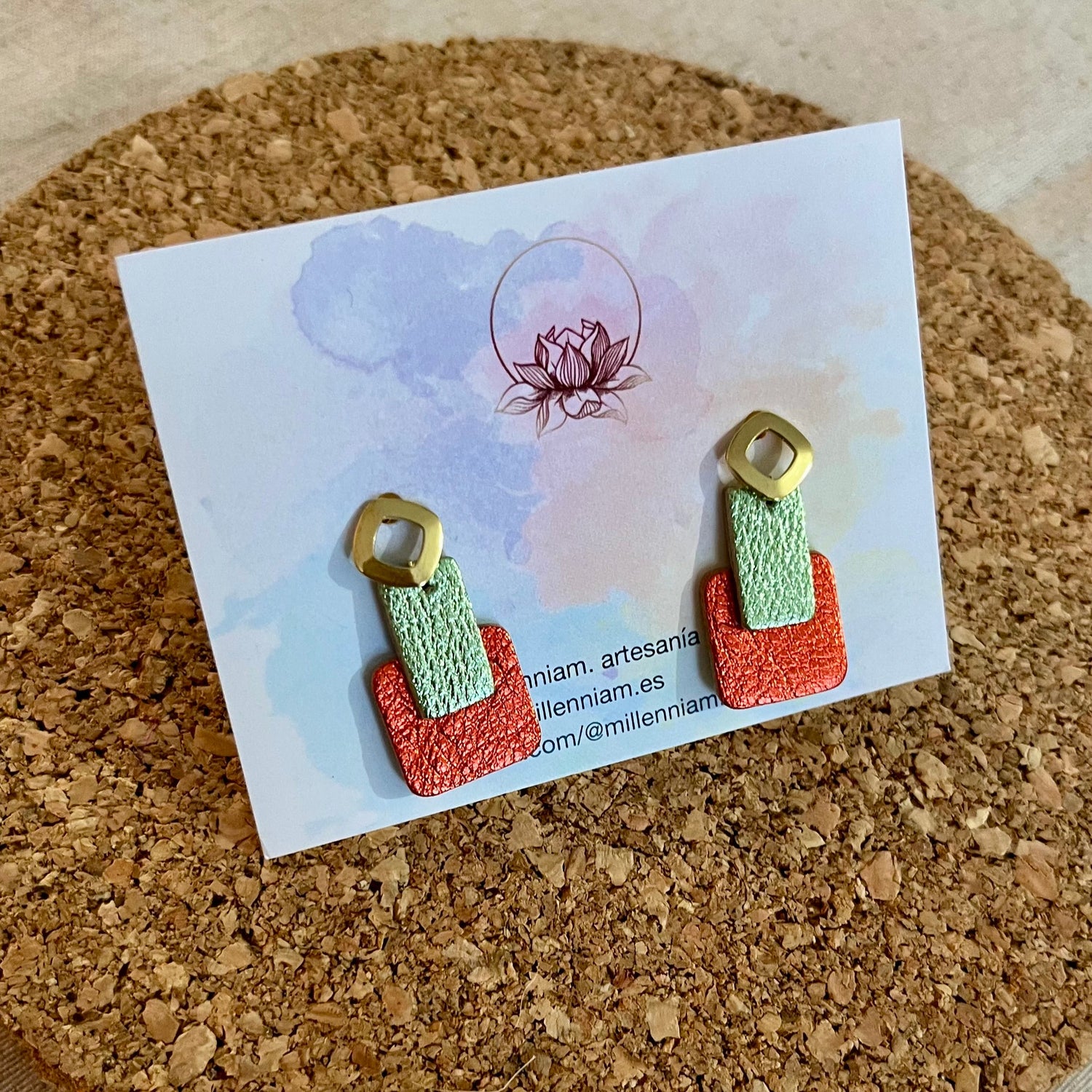 Minimalismo con alma. Tanae combina líneas rectas, formas geométricas y una armonía cromática que enamora. El rojo coral aporta vitalidad, el verde menta equilibra, y el toque metálico lo eleva. Un diseño moderno, sofisticado y con mucha intención. Perfecto para elevar cualquier look con un guiño contemporáneo.